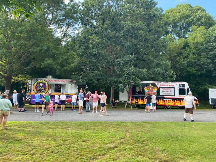 Following the great success of 2024’s first Food Truck Night, the Green Hill Civic Association, spearheaded by Marcia Ryter, organized food trucks in Green Hill Park (553 Green Hill Beach Road) on Tuesday, July 8th from 5 pm to 8 pm and invited neighboring associations to join in the fun. Featured food trucks included Wicked Good Sausage Co, Food Vibes, Casa Tia Rosa, Hook & Ladder Pizza, and Atomic Blonde Ice Cream. Friends and neighbors enjoyed delicious food with the whole family!